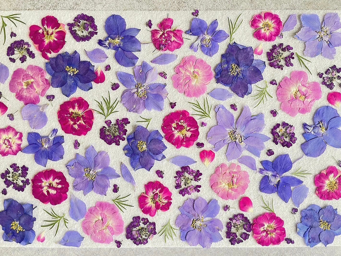 ❏ 自宅で育てたお花を中心に、一つ一つ丁寧に押し花にしました。和紙に挟み、乾燥シートを入れて送付致します。 ※ 数セットずつ作っておりますので、多少の個体差がございます。予めご了承ください。 ❏ 種類・枚数 紫陽花(万華鏡)花20枚 マイクロアジアンタム(染め)葉5枚 バーベナA(濃いピンク)花25枚 バーベナB(赤・ピンク)花25枚 バーベナC(ラベンダーブルー・白)花25枚 ソテツの新芽(染め)葉30本 ❏ 保管上の注意点 ● 乾燥シートが湿ってきたら、電子レンジで500〜600W 50秒ほど加熱し、扇いで蒸気を飛ばすと繰り返しご使用いただけます。熱いまま入れると袋が湿りますので、必ず冷ましてから袋に入れてください。 ● 直射日光や高温多湿になる場所での保管は避けてください。 ❏ 配送の追跡ご希望の方はレターパックライトをご選択ください。