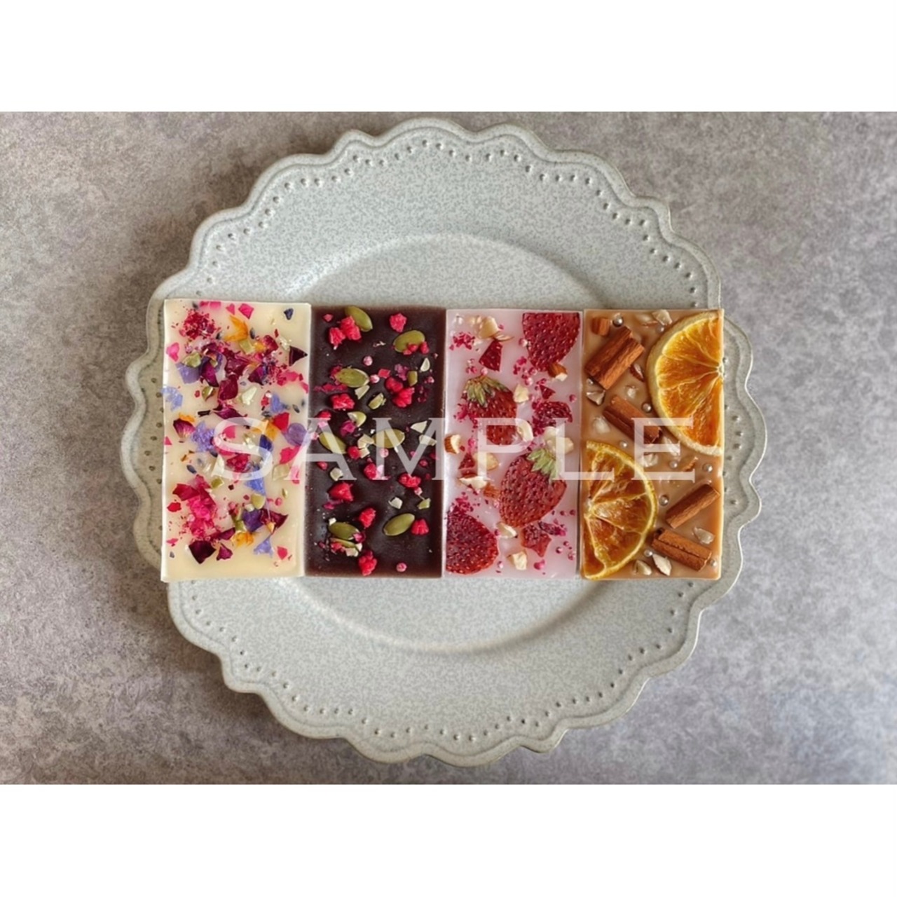 押し花・ドライフラワー・ドライフルーツなどを使用し、本物のチョコレートに近づけたデザインにしました。